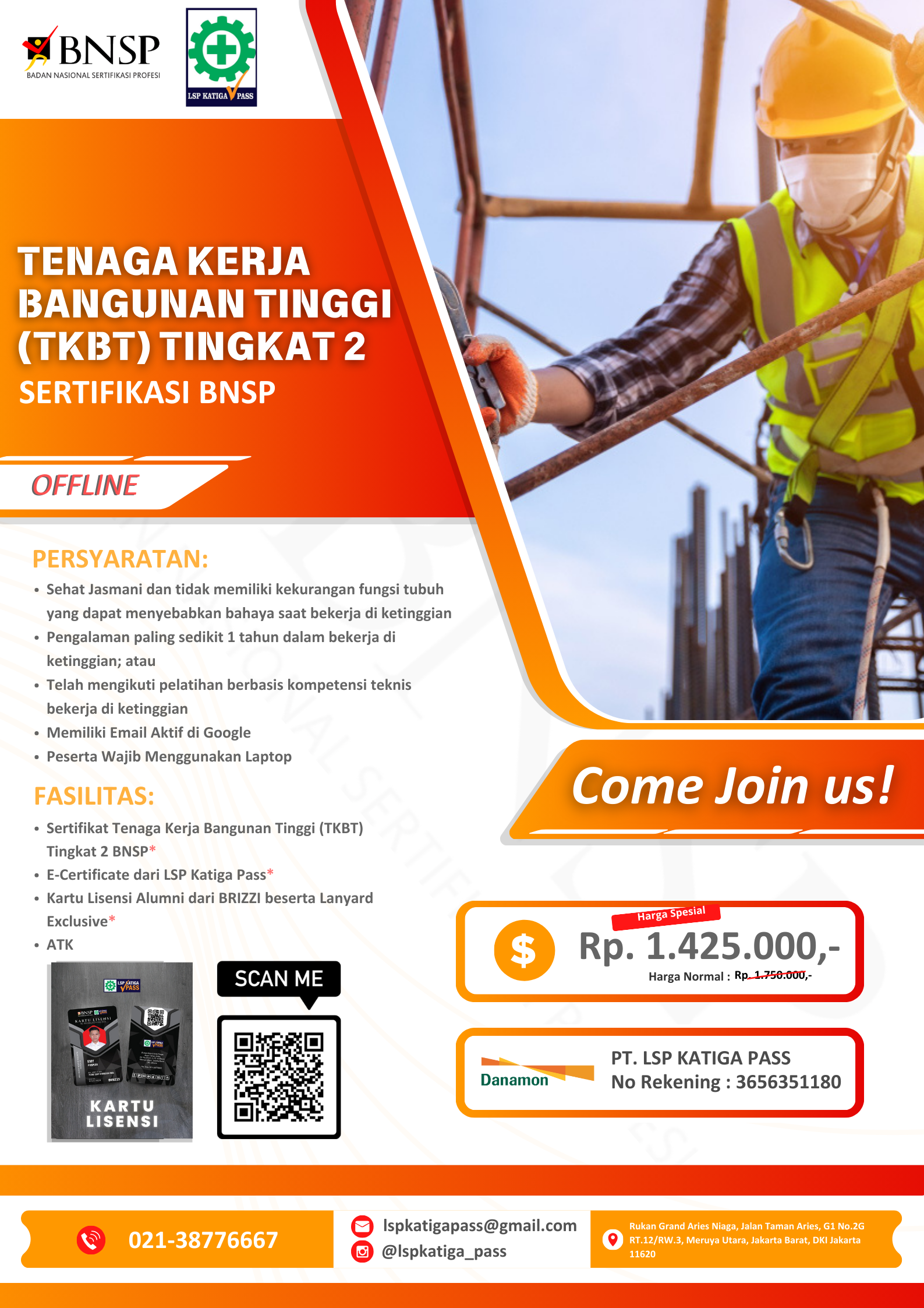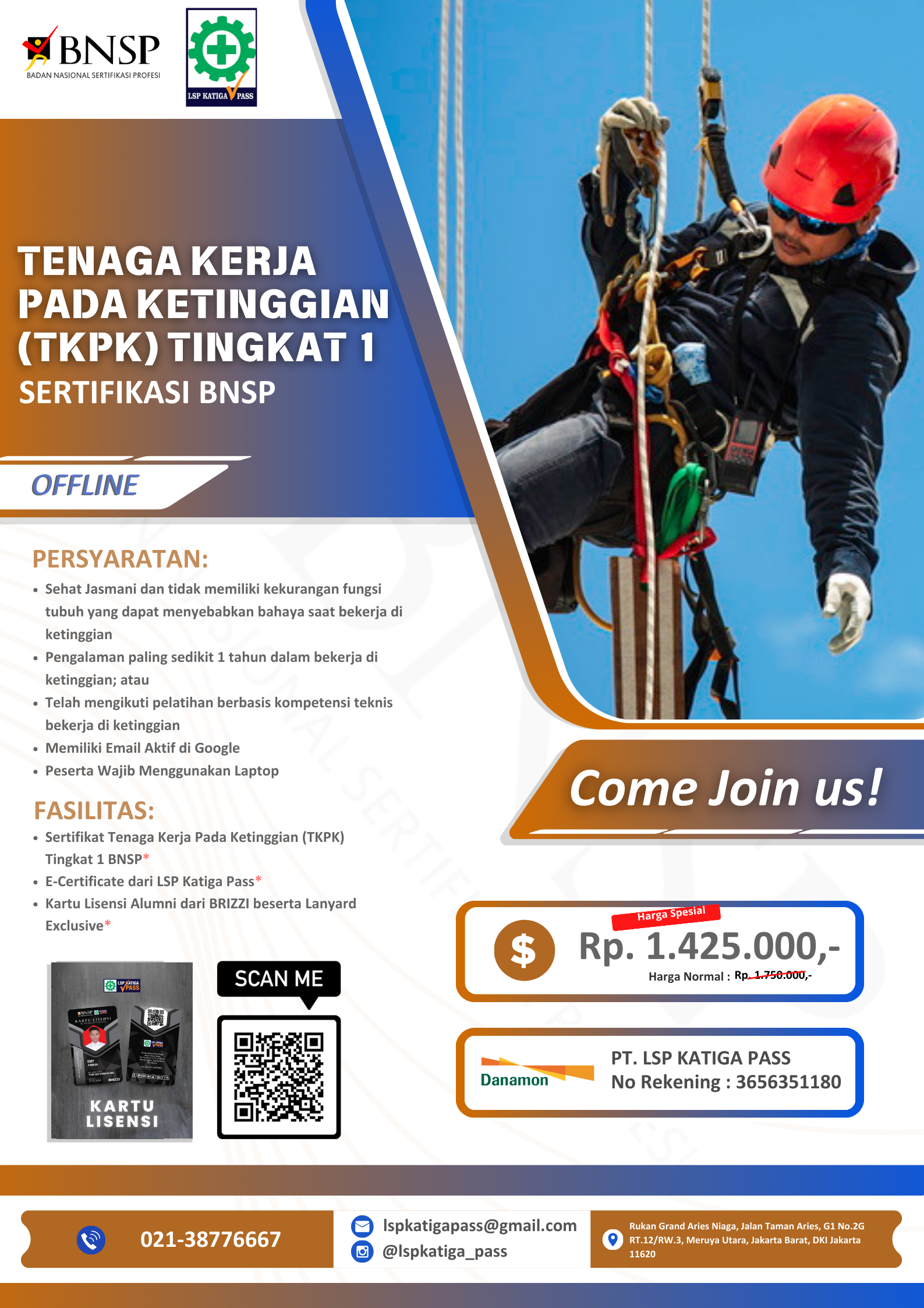 Jadwal Uji Kompetensi Tenaga Kerja Pada Ketinggian (TKPK) Tingkat 1 BNSP